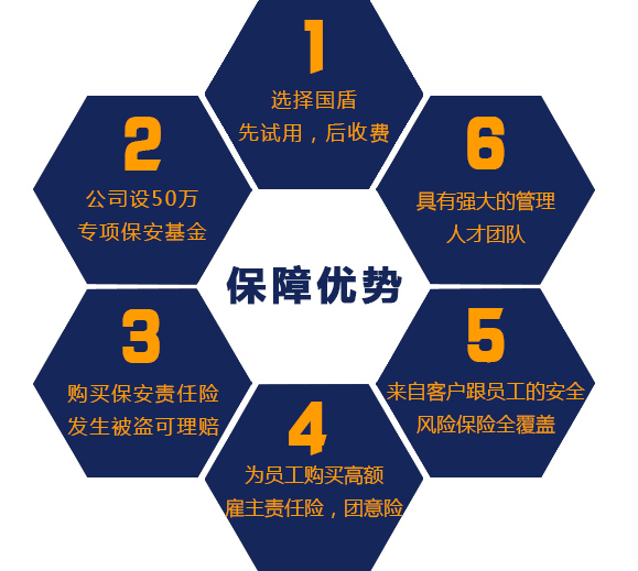 我們提供企業安全打包服務,選擇國盾,所有的管理人員考核、保安調動、員工勞動關系、員工保險關系一并打包,免去您用工的后顧之憂。